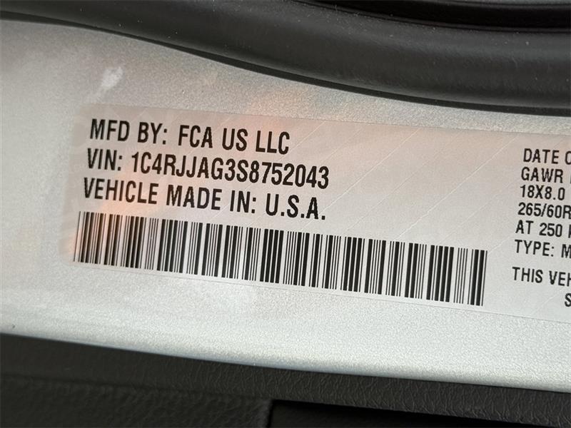 115V Auxiliary Power Outlet, 3rd Row Charge-Only USB Ports, Altitude X, Black Headliner, Capri Leatherette/Suede Seats, Delete Laredo Badge, Gloss Black Exterior Accents, Heated Front Seats, Heated Steering Wheel, Power Liftgate, Power Sunroof, Quick Order Package 23M Altitude X, Rain Sensitive Windshield Wipers, Remote Start System, Selectable Tire Fill Alert, Wheels: 18" x 8.0" Fully Painted Aluminum 1, Wireless Charging Pad.