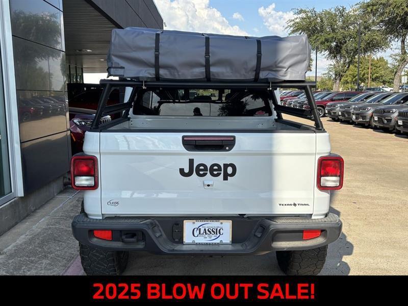 You may qualify for additional rebates. Price includes: $2250 - 2025 National Retail Bonus Cash . Exp. 04/30/2026 2025 Jeep Gladiator Texas Trail 4D Crew Cab 8-Speed Automatic 3.6L V6 24V VVT 4WD Bright White Clearcoat 17/22 City/Highway MPG97 MPH Vehicle Max Speed Calibration, Advanced Brake Assist, Automatic Headlamps, Body Color 3-Piece Hard Top, Body Color Fender Flares (2-Piece), Convenience Group, Corning Gorilla Glass, Daytime Running Lamp System, Deep Tint Sunscreen Windows, Emergency/Assistance Call, Freedom Panel Storage Bag, Front Door Locks 2-Door Passive Entry, Full Length Floor Console Premium Armrest, Full Speed Forward Collision Warning Plus, Hard Seat Back, Heated Front Seats, Heated Steering Wheel, Integrated Radar Camera Module (IRCM), Leather Wrapped Park Brake Handle, Leather Wrapped Shift Knob, Power 4-Way Driver Lumbar Adjust, Power 4-Way Passenger Lumbar Adjust, Power Adjust 8-Way Driver Seat, Power Adjust 8-Way Front Passenger Seat, Power Heated Mirrors, Premium Door Trim Panel, Premium McKinley Trimmed Seats, Premium Wrapped Steering Wheel, Quick Order Package 24J Texas Trail, Rear Armrest w/Cupholder Seat, Rear Sliding Window, Rear Window Defroster, Remote Start System, Security Alarm, Sun Visors w/Illuminated Vanity Mirrors, Texas Trail, Texas Trail Tailgate & Hood Decals, Universal Garage Door Opener, Wheels: 17" x 7.5" Painted Black, Willys Suspension.