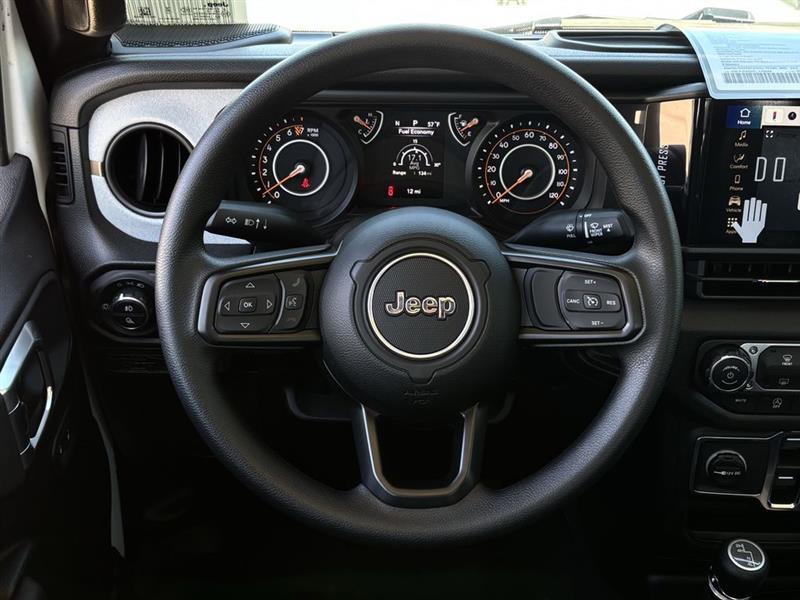 Classic Jeep Customer Care! Classic Customers are our first priority! Come see us today at Classic, 110 Mph Vehicle Max Speed Calibration, 12.3" Touchscreen Display, 3.73 Rear Axle Ratio, 4-Wheel Disc Brakes, 4G LTE Wi-Fi Hot Spot, 8 Speakers, ABS brakes, Air Conditioning, Alexa Built-in, AM/FM radio: SiriusXM with 360L, Apple CarPlay, Apple CarPlay/Android Auto, Black 3-Piece Hard Top, Brake assist, Compass, Connectivity - US/Canada, Delay-off headlights, Driver door bin, Driver vanity mirror, Dual front impact airbags, Dual front side impact airbags, Electronic Stability Control, For Details, Visit DriveUconnect.com, Freedom Panel Storage Bag, Front anti-roll bar, Front Bucket Seats, Front Center Armrest w/Storage, Front fog lights, Front reading lights, Google Android Auto, Illuminated entry, Integrated Center Stack Radio, Integrated roll-over protection, Low tire pressure warning, MOPAR All-Weather Slush Mats, MyFlexCare Service Plan, Normal Duty Suspension, Occupant sensing airbag, Outside temperature display, Overhead airbag, Panic alarm, ParkView Rear Back-Up Camera, Passenger door bin, Passenger vanity mirror, Power steering, Power windows, Quick Order Package 24B Sport, Radio data system, Radio: Uconnect 5 with 12.3" Display, Rear anti-roll bar, Rear reading lights, Rear Sliding Window, Rear Window Defroster, Remote keyless entry, SiriusXM Radio Service, SiriusXM with 360L, Speed control, Split folding rear seat, Steering wheel mounted audio controls, Tachometer, Telescoping steering wheel, Tilt steering wheel, Traction control, Trip computer, USB Host Flip, Variably intermittent wipers, Voltmeter, Wheels: 17" x 7.5" Black Steel Styled, Wheels: 17" x 7.5" Gray.