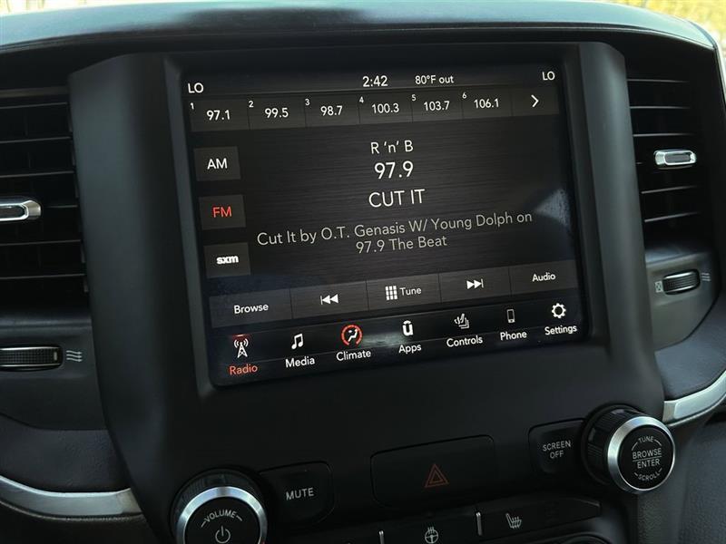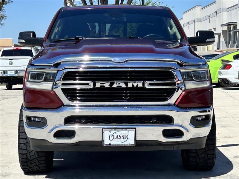 1500 Big Horn/Lone Star, 4D Crew Cab, HEMI 5.7L V8 Multi Displacement VVT, 8-Speed Automatic, RWD, Delmonico Red Pearlcoat, Lt Frost Beige/Black Cloth, 1-Year SiriusXM Radio Service, 4 Adjustable Cargo Tie-Down Hooks, 8.4" Touchscreen Display, Air Conditioning ATC w/Dual Zone Control, Apple CarPlay, Auto-Dimming Exterior Driver Mirror, Auto-Dimming Rear-View Mirror, Bed Utility Group, Big Horn IP Badge, Big Horn Non-BSG Level 2 Equipment Group (DISC), Class IV Receiver Hitch, Cluster 7.0" TFT Color Display, Dampened Tailgate, Exterior Mirrors Courtesy Lamps, Exterior Mirrors w/Supplemental Signals, Foam Bottle Insert (Door Trim Panel), For More Info, Call 800-643-2112, Front LED Fog Lamps, Glove Box Lamp, Google Android Auto, Heated Front Seats, Heated Steering Wheel, Integrated Center Stack Radio, LED Reflector Headlamps, LED Taillamps, ParkSense Front/Rear Park Assist w/Stop, Pick-Up Box Lighting, Power 4-Way Driver Lumbar Adjust, Power 8-Way Driver Seat, Power Adjustable Pedals, Power Heated Fold Away Mirrors, Power-Folding Mirrors, Premium Lighting Group, Quick Order Package 25Z Big Horn/Lone Star, Radio: Uconnect 4 w/8.4" Display, Rear Dome w/On/Off Switch Lamp, Rear Power Sliding Window, Rear Window Defroster, Remote Start System, Security Alarm, Single Disc Remote CD Player, SiriusXM Satellite Radio, Spray In Bedliner, Steering Wheel Mounted Audio Controls, Sun Visors w/Illuminated Vanity Mirrors, Universal Garage Door Opener. Awards: