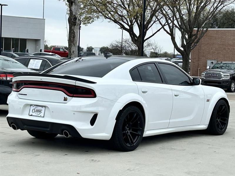 CARFAX One-Owner. Thanks for choosing a quality preowned vehicle with Classic CDJRF Pre-Owned. This vehicle has been through an extensive multi-point inspection by an ASE Certified Technician. We have also reconditioned this vehicle inside and out to provide you with as close to new as possible. Buy with confidence. Free CARFAX report. Dallas Fort Worth Used Car Super Store serving Arlington, Grand Prairie, Irving, Grapevine and North Texas. Call Classic CDJR Pre-Owned today @ (817) 918-9842 or visit us on-line. Link: https://www.classiccdjrf.com/used-inventory/index.htm.Charger R/T Scat Pack Widebody, 4D Sedan, SRT HEMI 6.4L V8 MDS, 8-Speed Automatic, RWD, White Knuckle Clearcoat, Ruby Red/Black Artificial Leather, 1-Yr SiriusXM Guardian Trial, 19 harman/kardon GreenEdge Speakers, 2-Piece Shark Fin Antenna, 4G LTE Wi-Fi Hot Spot, 5-Year SiriusXM Traffic Service, 5-Year SiriusXM Travel Link Service, 8.4" Touchscreen Display, Adaptive Damping Suspension, All Speed Traction Control, Apple CarPlay, Auto Adjust In Reverse Exterior Mirrors, Auto-Dimming Exterior Driver Mirror, Bi-Function HID Projector Head Lamps, Black-Edged Premium Floormats, Blind Spot & Cross Path Detection, Blind Spot Memory/Power/Heat Mirror, Body Color Exterior Mirrors, Body Color Fender Flares, Brembo 6-Pot Fixed Front Caliper Brakes, Carbon/Suede Interior Package, Driver & Passenger Lower LED Lamps, Driver Convenience Group, Exterior Mirrors Courtesy Lamps, Exterior Mirrors w/Heating Element, Flat-Bottom Steering Wheel, For Details, Visit DriveUconnect.com, Front Overhead LED Lighting, Google Android Auto, GPS Antenna Input, GPS Navigation, harman/kardon Audio Group, harman/kardon GreenEdge Amp, HD Radio, Heated 2nd Row Seats, Heated Front Seats, Illuminated Rear Cupholders, Integrated Center Stack Radio, Integrated Voice Command w/Bluetooth, Media Hub (2 USB, AUX), Navigation & Travel Group, Performance Shift Indicator, Plus Group, Power 2-Way Driver Lumbar Adjust, Power 2-Way Passenger Lumbar Adjust, Power Front Driver/Passenger Seats, Power Tilt/Telescope Steering Column, Premium-Stitched Dash Panel, Quick Order Package 21V Scat Pack Widebody, Radio: Uconnect 4C Nav w/8.4" Display, Radio/Driver Seat/Mirrors Memory, Real Carbon Fiber Interior Accents, Rear Seat Armrest w/Storage Cupholder, Rhombi 2-Pc Wheel Center Cap, Scat Pack Logo Nappa/Alcantara Seat, SiriusXM Traffic Plus, SiriusXM Travel Link, Suede Headliner, Surround Sound, USB Host Flip, Ventilated Front Seats, Widebody Competition Suspension, Widebody Package. Best Experience! No Haggling, No Tricks, No Games, Transparent, Hassle Free Environment! Clean CARFAX.